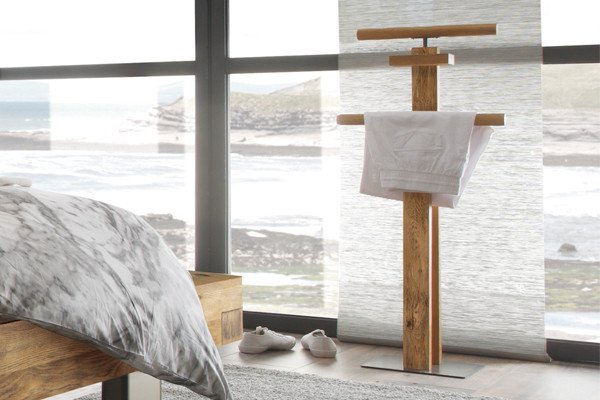 Mit einem Kleiderschrank schaffen Sie bereits wertvolle Aufbewahrungsmöglichkeiten für Kleidung und Wäsche. Ergänzen Sie den Stauraum mit einer Schubladenkommode für Unterwäsche, Socken und Schmuck. Hinter den Türen einer Kombikommode können Sie auch größere Kleidungsstücke oder Bettbezüge verstauen. Für Dinge, die Sie griffbereit am Bett wissen möchten, bieten sich Nachtkonsolen im Einklang mit dem jeweiligen Bett an. Als minimalistische Ablage für Brille oder Smartphone eignen sich kleine Nachttische. Mit Türen oder Schubladen ausgestattet, werden die Nachtkonsolen zu Nachtschränkchen mit mehr Stauraum. In einem großen Schlafzimmer wirkt eine Bettbank oder Betttruhe vor dem Fußende Ihres hohen Bettes stilsicher. Die Truhenmöbel bieten Platz für Ihre Bettwäsche und mit einer gepolsterten Oberfläche ziehen Sie auf der Bettbank bequem Ihre Socken an. Getragene Kleidung, die Sie am nächsten Tag wieder anziehen möchten, lüftet auf einem Kleiderständer oder Herrendiener über Nacht durch. Die Kleidungsstücke sind am nächsten Morgen zudem knitterfrei und schnell griffbereit. Wenn Sie einen Kleiderschrank ohne Spiegel haben, bieten Ihnen Wand- oder Standspiegel die Gelegenheit, das gewählte Outfit einem prüfenden Blick zu unterziehen. Spiegel und Garderobe vereint ein Standspiegel für Ihr Schlafzimmer, der hinter der Spiegelfläche Haken für Ihre Kleidungsstücke verbirgt. Wenn Sie im Schlafzimmer das Make-up auflegen und die Frisur richten möchten, bereichert ein Schminktisch Ihre Schlafzimmereinrichtung. Oftmals bieten Schmink- und Frisiertische Schubladen für Kosmetikutensilien und lassen sich mit einem beleuchteten Wandspiegel kombinieren.