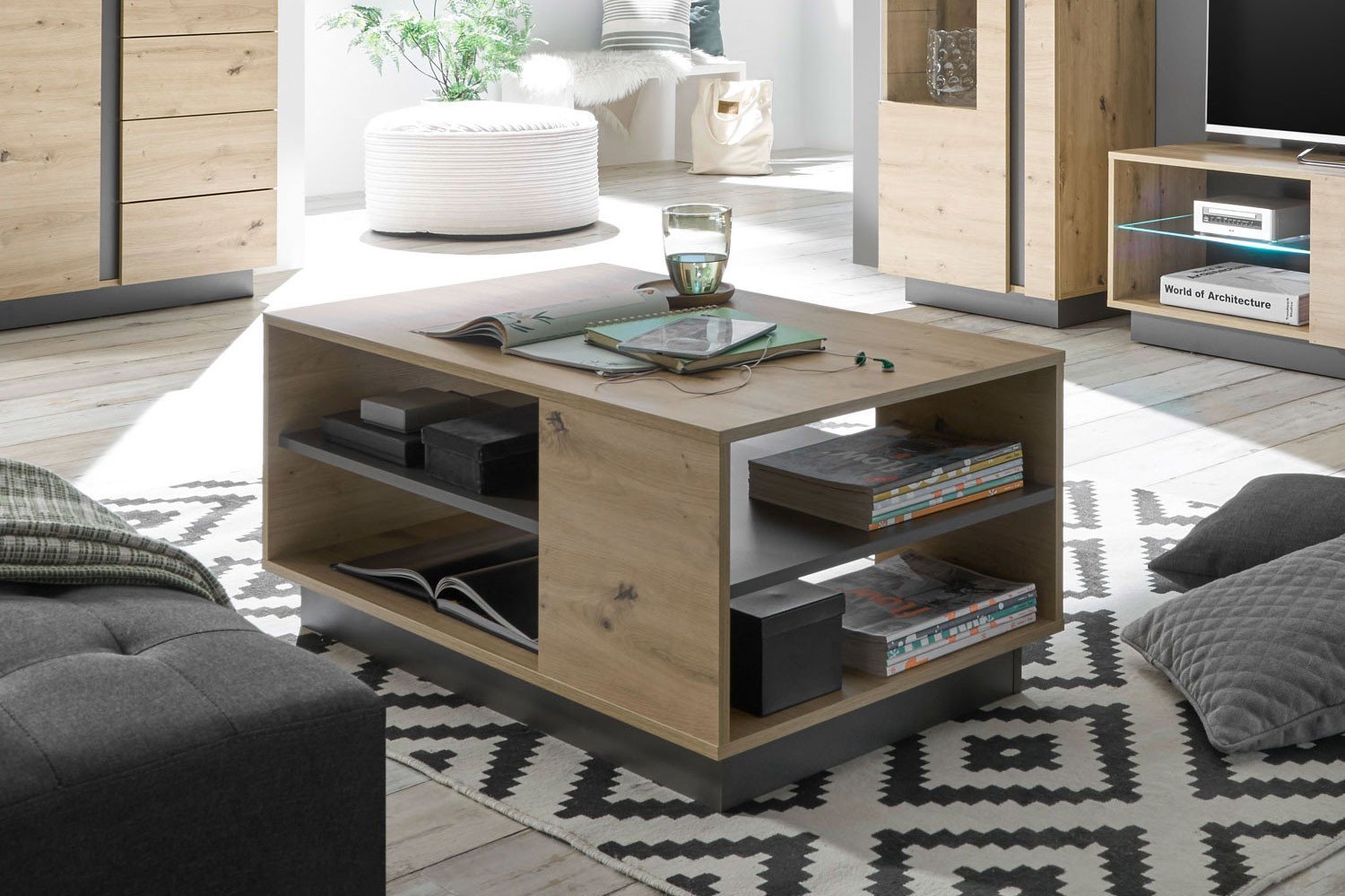 Ein Traum in Weiß - mit diesem Couchtisch von Kollektion Letz aus der Modellreihe Clair erhalten Sie nicht nur ein praktisches Möbelstück für Ihr wunderschönes Zuhause, sondern erleben auch eine gemütliche Atmosphäre. Die edle Ausführung in Artisan Eiche mit Absetzungen in Graphit ist die perfekte Voraussetzung, um in Ihrem Heim für eine angenehme Zeit zu sorgen. Dieses kleine Schmuckstück dient darüber hinaus wunderbar als Ablagemöbel. Egal, ob Sie ein Glas Ihres Lieblingsgetränkes, eine Schale voller Obst abstellen oder alltägliche Utensilien, wie beispielsweise Ihre Fernbedienung oder Ihre Fernsehzeitung unterbringen möchten. Dieser Couchtisch von Kollektion Letz hält ausreichend Unterbringungsmöglichkeiten für Ihre persönlichen Gegenstände bereit. Eine Auswahl weiterer Einzelmöbel von Kollektion Letz aus der Modellreihe Clair erhalten Sie über unseren Möbelplaner. Gestalten Sie sich Ihre Oase zum Wohlfühlen und machen Sie es sich gemütlich.