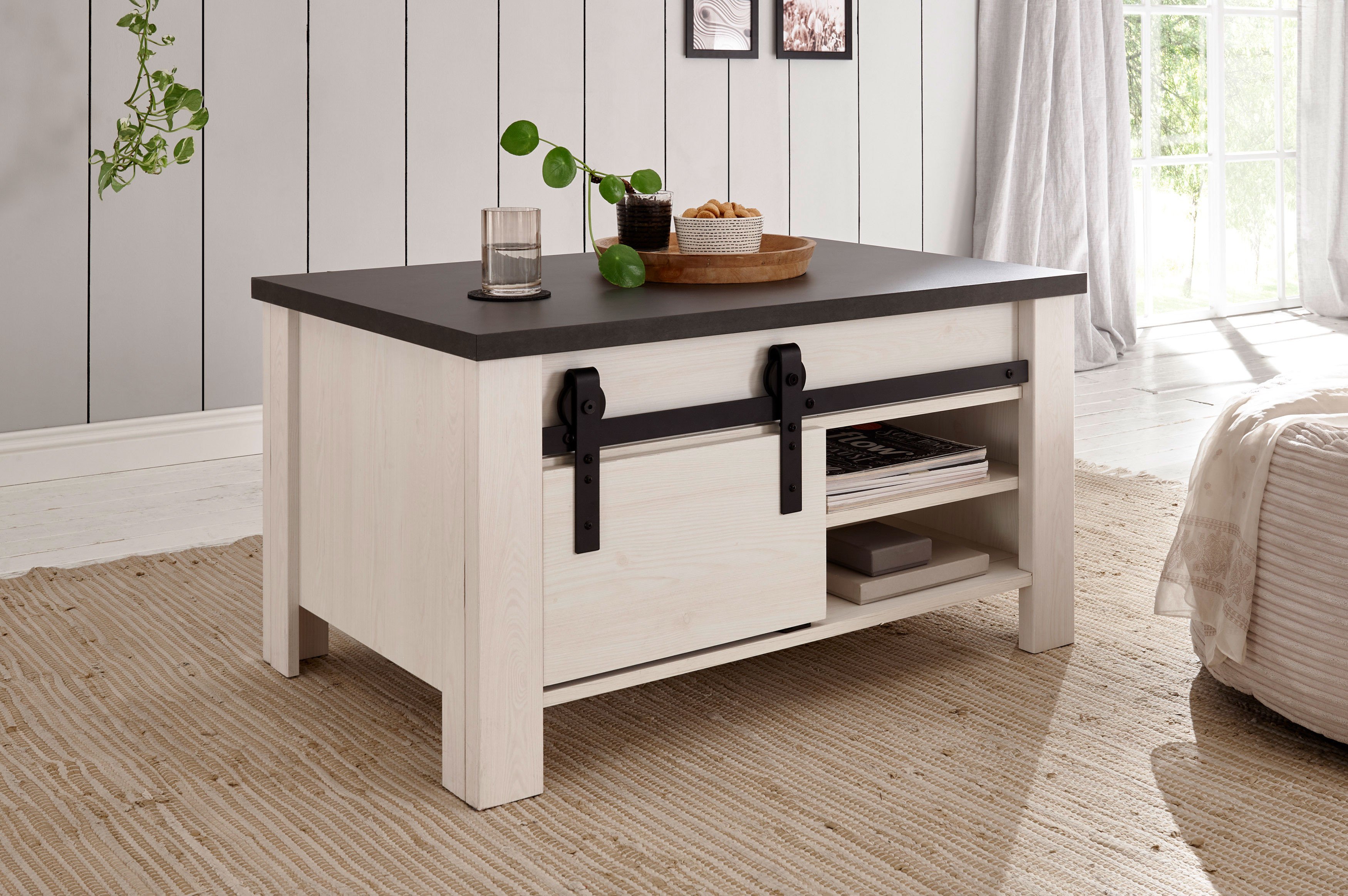 - Couchtisch mit 1 Schiebetür, 2 Böden und 2 offenen Fächern