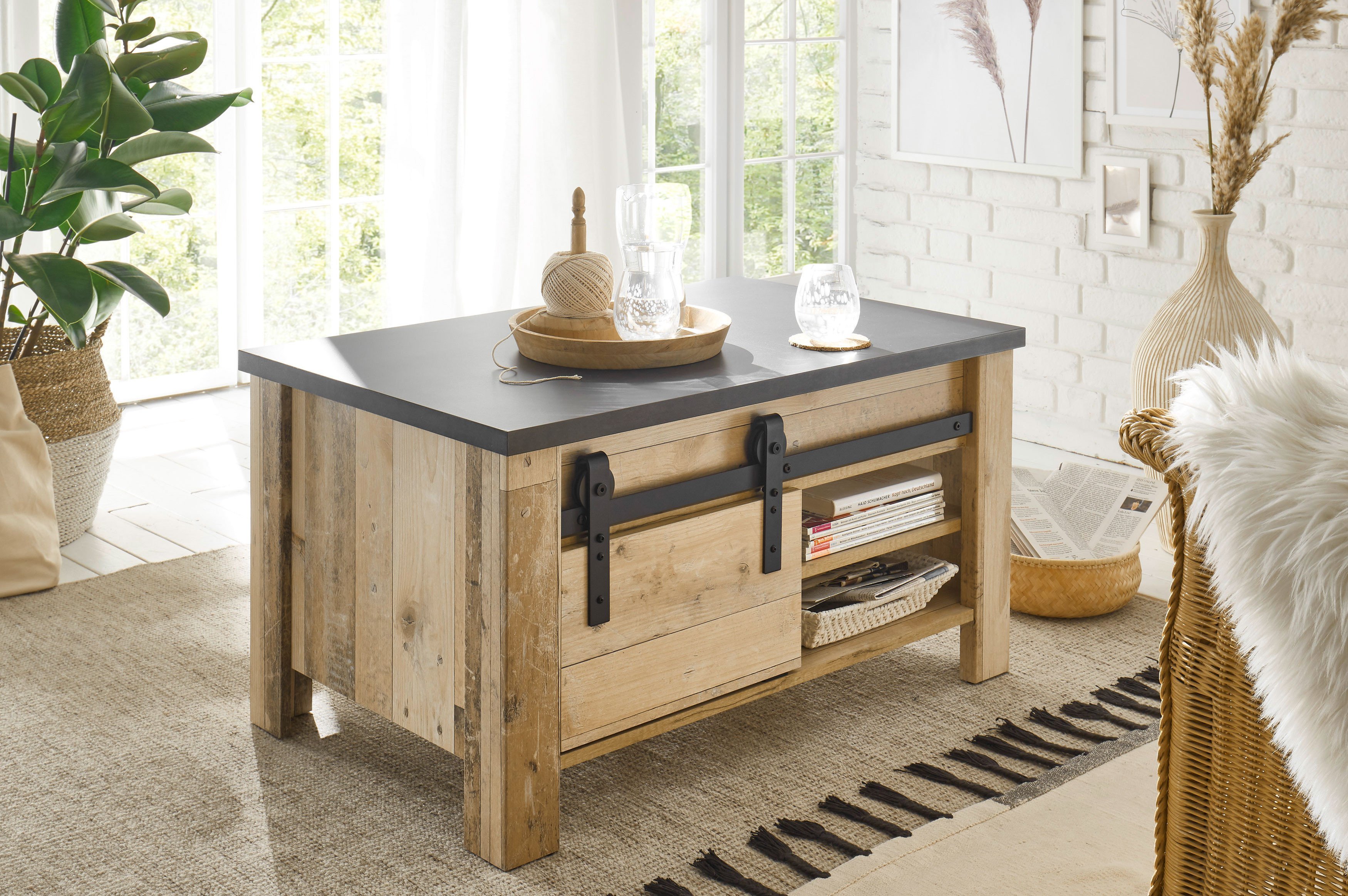 Ein Couchtisch ist eines der wichtigsten Möbelstücke für ein perfekt eingerichtetes Wohnzimmer. Dieses wunderbare Möbelelement von Kollektion Letz aus der Modellreihe Sherwood ist bekannt für seinen modernen Stil. Die wunderschöne Holzausführung bewirkt in Ihrem Lieblingsraum eine angenehme Atmosphäre zum Wohlfühlen. Darüber hinaus überzeugt der praktische Couchtisch von Kollektion Letz mit seiner vielseitigen Einsetzbarkeit. Auf der ca. 93 x 60 cm großen Tischplatte, hinter der Schiebetür sowie in den zwei offenen Fächern finden die diversen Knabbereien, das Lieblingsbuch oder die Fernbedienung einen geeigneten Platz. So können bei spontanem Besuch persönliche Dinge schnellstmöglich untergebracht werden. Sie benötigen noch weiteres Mobiliar für Ihren Wohnbereich? Dann schauen Sie in unseren Möbelplaner, denn in diesem können Sie aus einer Vielzahl verschiedener Solisten auswählen, um sich Ihren persönlichen Wohlfühlraum nach Ihren Vorstellungen zu erschaffen. Lassen Sie diesen Couchtisch in Ihre vier Wände einziehen und perfektionieren Sie Ihr wundervolles Zuhause.