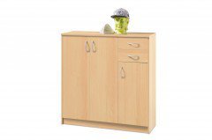 Ideal für kleine Räume präsentieren wir Ihnen eine platzsparende Kommode aus der Kollektion Letz. Dank der geringen Tiefe von circa 35 cm nimmt Sie wenig Platz in Anspruch und doch passt viel rein. Das Universaltalent aus der Kollektion Optimus zeigt sich in einer schicken und zeitlos modernen Buchen-Optik und ist besonders praktisch angeordnet. Hinter den beiden großen linken Türen befinden sich drei große Einlegeböden und hinter der kleineren rechten Tür befinden sich zwei weitere Einlegeböden. Auf den Einlegeböden können Sie Ihre größeren Gegenstände, wie Schuhe oder Geschirr, platzieren. Um kleinere Utensilien unterzubringen, kommen zwei Schubkästen infrage und die Ablagefläche eignet sich optimal, Ihre Dekoartikel zu präsentieren. Sie benötigen mehr Stauraum? Kollektion Letz - dynamisches Sortiment in aktuellen Farben und Optiken.