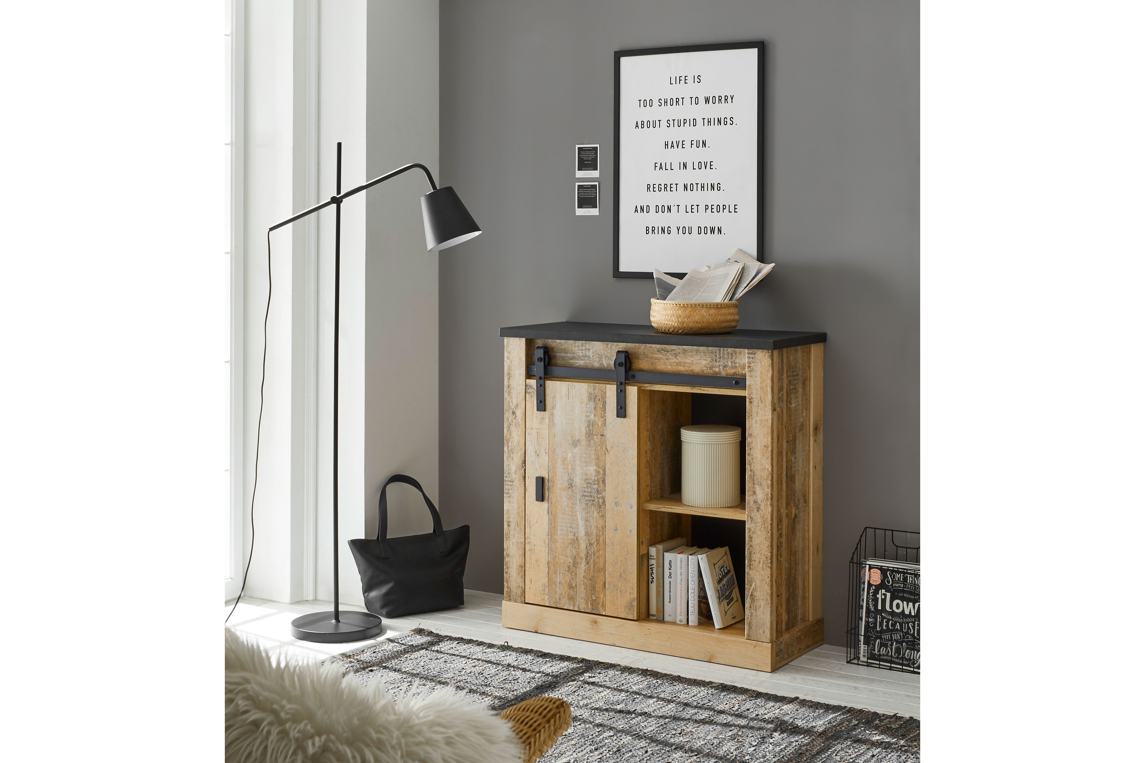 - Kommode mit 1 Schiebetür, 2 Böden und 2 offenen Fächern
