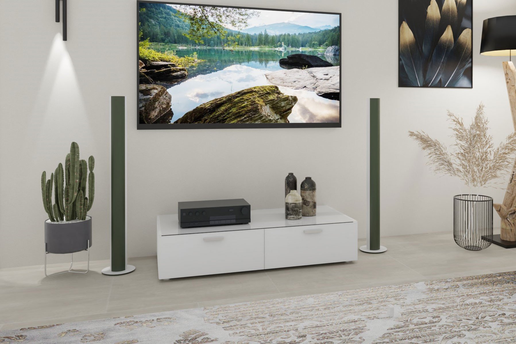 Sie wollen modernes Design und hochwertige Verarbeitung mit dem gewissen Etwas der Marke LEONARDO kombinieren? Dann finden Sie in der Kollektion CUBE-living genau das Richtige. Das Lowboard vereint Stil mit Eleganz. Der Korpus ist vollständig verglast, wodurch brillante Spiegelungen entstehen. Das puristische Weiß setzt einmalige Akzente und überzeugt durch dekorative Licht- wie auch Schattenkontraste. Aufgrund der Breite von circa 126 Zentimetern haben Sie ausreichend Platz für Ihr TV-Gerät, welches Sie mit verschiedensten Dekorationen zusammen arrangieren können. Die Metallgriffe sind Hochglanz verchromt und verzaubern mit einem eingeprägten LEONARDO-Logo. Reichlich Stauraum für Ihr technisches Zubehör sowie griffbreite Kleinigkeiten wird in den zwei Schubkästen zur Verfügung gestellt. Dieses Möbelstück ist vielseitig kombinierbar und überzeugt als Einzelelement sowie in Kombination mit anderen Solisten. Bereichern Sie Ihr Wohnzimmer mit dem Lowboard aus der Kollektion CUBE-living von LEONARDO living.
