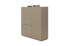 Manche Möbelstücke erfüllen einfach einen Zweck, andere verändern den Raum. Das Highboard Simea von Musterring in edlem Kaschmir gehört eindeutig zur zweiten Kategorie. Seine sanfte, warme Farbgebung wirkt ruhig, stilvoll und zeitlos zugleich – ein Farbton, der nicht laut sein muss, um Aufmerksamkeit zu bekommen. Kaschmir bringt eine elegante Leichtigkeit in den Raum und harmoniert sowohl mit modernen als auch mit klassischen Wohnstilen. Hinter drei hochwertigen Holztüren verbirgt sich großzügiger Stauraum für alles, was ordentlich und dennoch griffbereit verstaut werden soll. Drei stabile Einlegeböden schaffen Struktur und Flexibilität – perfekt für Geschirr, Bücher, Wohnaccessoires oder persönliche Lieblingsstücke. Der integrierte Schubkasten ergänzt das Möbelstück um praktischen Komfort. Hier finden kleinere Dinge ihren Platz, die im Alltag schnell zur Hand sein sollen, ohne sichtbar zu sein. Doch Simea überzeugt nicht nur funktional. Es ist die typische Musterring-Qualität, die dieses Highboard besonders macht: präzise Verarbeitung, langlebige Materialien und ein Design, das auch nach Jahren noch modern wirkt.