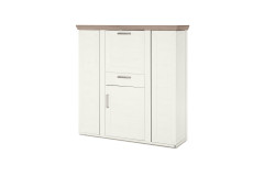 Sind Sie auf der Suche nach einem Highboard, das sich von anderen absetzt? Dann haben Sie mit York von set one by Musterring genau das passende Modell gefunden. Dieses einzigartige Element ist mit zwei Karussells – jeweils eines links und eines rechts – ausgestattet, welche in verschiedene Positionen gedreht werden können. Jede Seite hält vier offene Fächer für Sie parat, in welche Sie Ihre persönlichen Gegenstände platzieren können. Drehen Sie das Karussell, um sie zu verbergen, halb geöffnet oder ganz geöffnet zu präsentieren. Mit so einem außergewöhnlichen Merkmal begeistert diese Kommode auf vielen Ebenen. Perfekt geeignet als Barschrank ist sie auch, denn hinter der oberen Barklappe befindet sich ein Glaseinlegeboden. Für Kleinigkeiten wurde ein Schubkasten direkt darunter platziert und mit der unteren Tür, hinter welcher sich ein weiterer Boden verbirgt, erhalten Sie umfangreichen Stauraum. In den Zusatzoptionen finden Sie drei verschiedene Ausführungen, mit denen Sie dieses Highboard zu einem passenden Element in Ihrem Zuhause machen. Entdecken Sie noch heute die Vielfalt von York von set one by Musterring.
