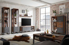 Sie suchen ein elegantes und robustes Lowboard für Ihren Flatscreen? Dann haben Sie dieses mit dem Kollektion Letz Lowboard der Serie Detroit gefunden. Der Solist im Industrial Design, welches durch die elegante Stirling Oak Nachbildung und die rustikale Matera-Applikation stilvoll unterstrichen wird, fügt sich optimal in offene Wohnsituationen wie Großraumwohnungen oder Lofts ein. Die wirklichkeitsgetreuen Kunststoff-Griffschalen in Altsilber runden den industriellen Schick ab. Sie befürchten, dass Ihre Gaming-Console keinen Platz findet? Wir können Sie beruhigen. Das Lowboard verfügt über zwei geräumige Gerätefächer. Somit können Sie neben der Konsole gleich noch die Anlage verstauen. Ihre Spielesammlung findet seinen Standort hinter den zwei noblen Türen. Schieben Sie Ihre Entscheidung nicht länger auf und holen Sie sich noch heute das Lowboard passend zu den Kollektion Letz Kommoden in Ihre Wohlfühloase nach Hause. Kollektion Letz - attraktives, junges Design für Ihr Heim.