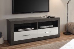 - Lowboard inklusive Kabeldurchlass mit 2 Gerätefächern und 2 Schubkästen