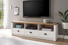 Ein Lowboard, wie dieses aus der Modellreihe Provence des renommierten Herstellers Kollektion Letz lässt sich nicht nur wunderbar mit weiteren Einzelmöbeln oder aber auch mit kompletten Wohnkombinationen bestens verbinden, sondern wird auch als Solist zu einem wahren Hingucker. Die Ausführung aus hochwertiger Pinie in Weiß mit Absetzungen in heller Eiche sind die perfekte Mischung, um eine klassische und moderne Stilrichtung miteinander zu vereinen. So ist das Kollektion Letz Lowboard nicht nur für junge, sondern auch für junggebliebene. Mit einer Breite von ungefähr 160 cm können Sie Ihren neuesten Fernseher sowie weitere Mediengeräte gekonnt in Szene setzen. In den drei Schubkästen werden Ihnen zudem ausreichend Möglichkeiten zur Unterbringung wichtiger Unterlagen oder anderer alltäglicher Utensilien gegeben, welche außer Sichtweite und dennoch griffbereit abgelegt werden sollen. Erschaffen Sie sich mit dem Mobiliar von Kollektion Letz aus der Modellreihe Provence Ihre gemütliche Wohnoase.