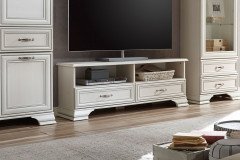 Außergewöhnliches Design im romantischen Landhausstil – so präsentiert sich das zeitlose Lowboard aus der Kollektion Letz. Die Ausführung der eleganten Modellserie Venedig überzeugt in Used White. Dieser angesagte Look lässt die Elemente antik und nostalgisch aussehen und bringt eine gewisse Gemütlichkeit in Ihre vier Wände. Der aufwendig gestaltete Kranz sowie die besonders geformten Metallgriffe in einer bearbeiteten Optik verleihen der stilvollen Serie das gewisse Etwas. Weitere Akzente setzen die im Kassettenlook gehaltenen Schubkästen. In Diesen bietet das TV-Möbel praktischen Stauraum für Ihre DVD-Sammlung sowie diverser Utensilien und in den beiden offenen Fächern finden Sie einen geeigneten Platz für Ihren Receiver oder andere Mediengeräte. Seinen idealen Aufstellungsort findet das Lowboard im Wohnzimmer, wo es mit weiteren Elementen der Kollektion Venedig kombiniert werden kann. Kollektion Letz - lassen Sie sich inspirieren und richten Sie sich neu ein.
