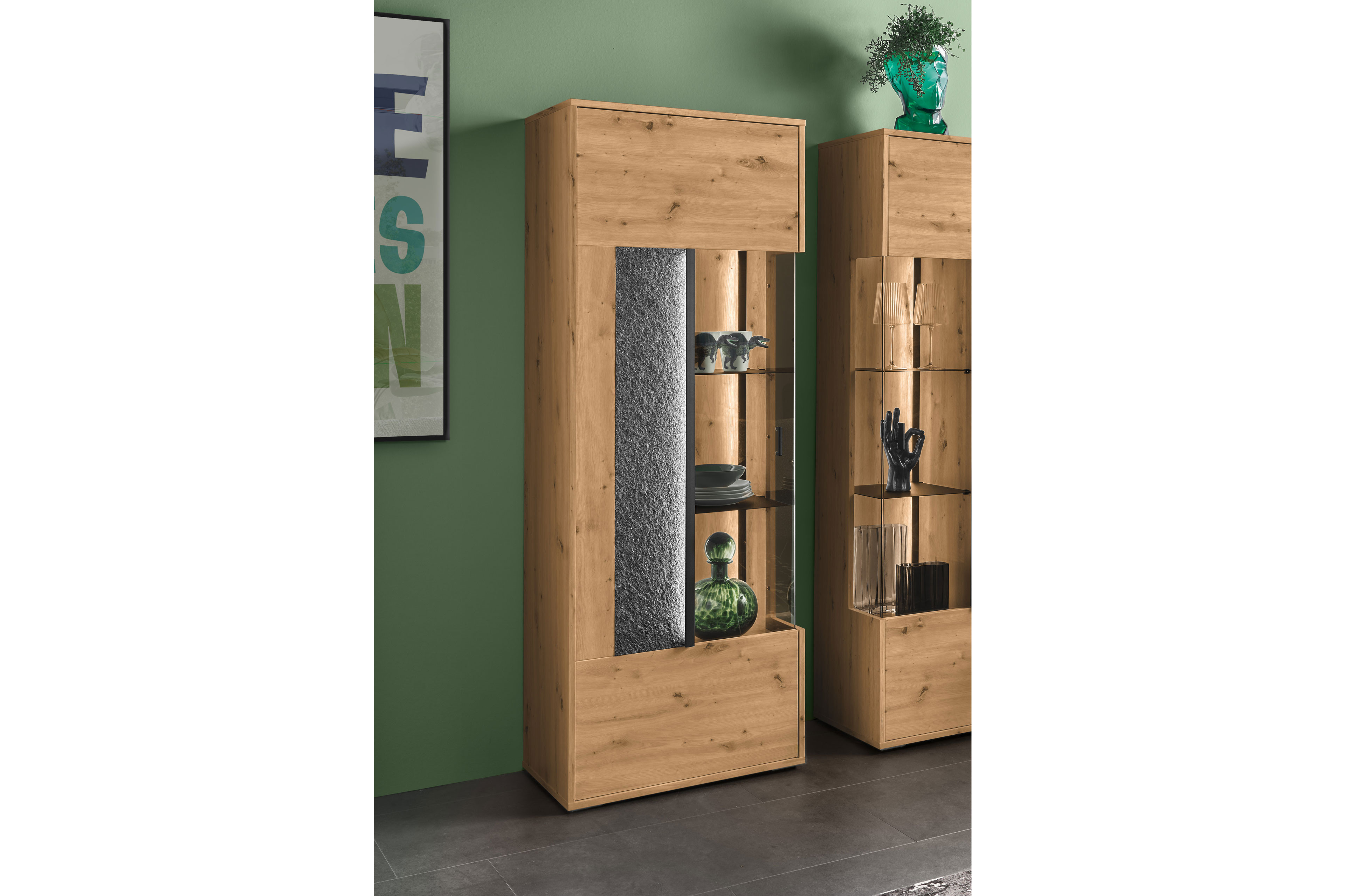 Vitrine von set one by Musterring - Modell Deltona in Eiche mit Zierelement Sandstein Deltona | clevere Wohnideen