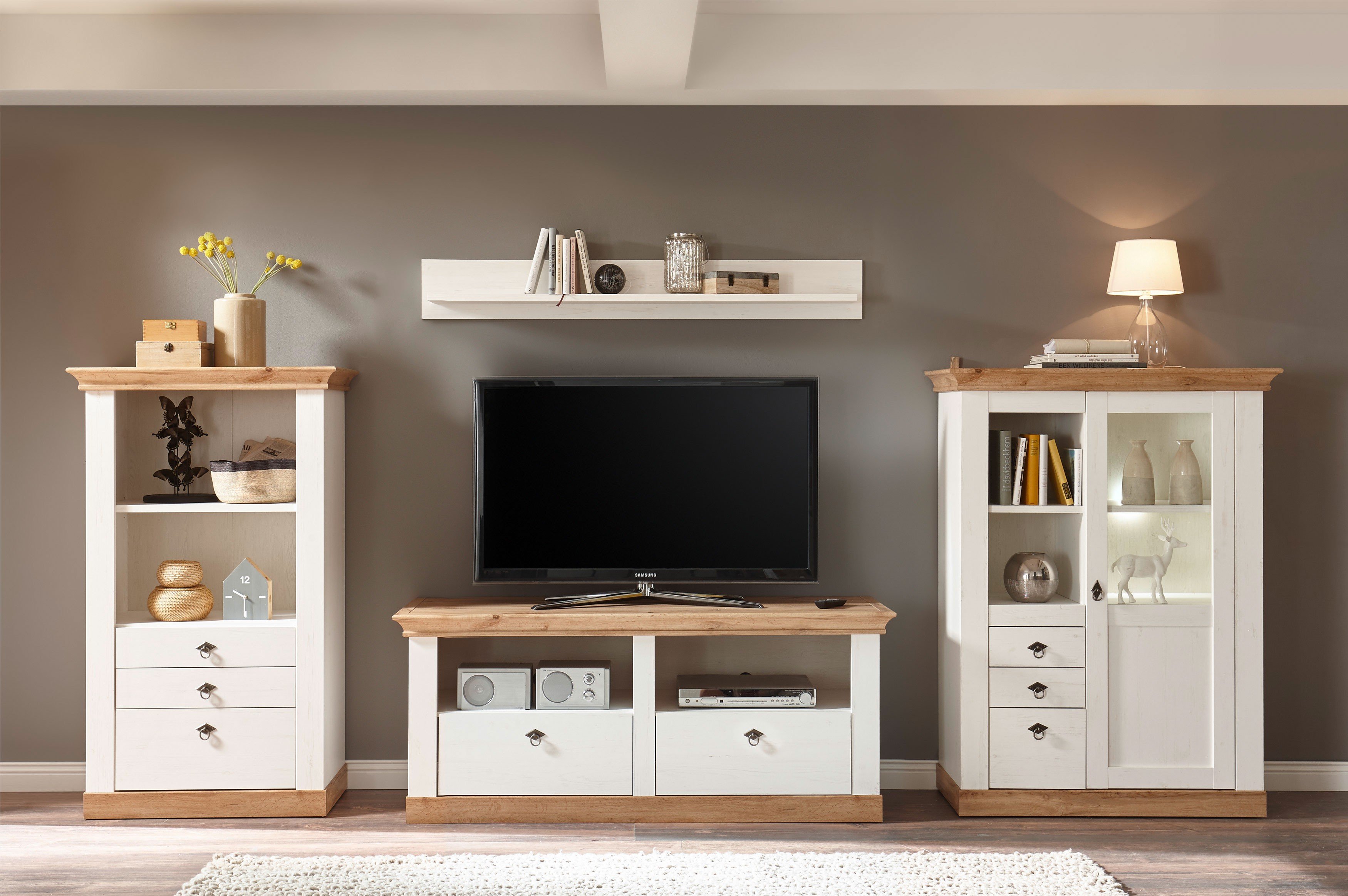 4tlg. Wohnwand von Kollektion Letz - Modell Landhaus in weißer Pinie Landhaus - klassisch im Landhausstil