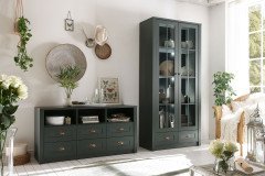 - Lowboard mit 3 offenen Fächern und 6 Schubkästen