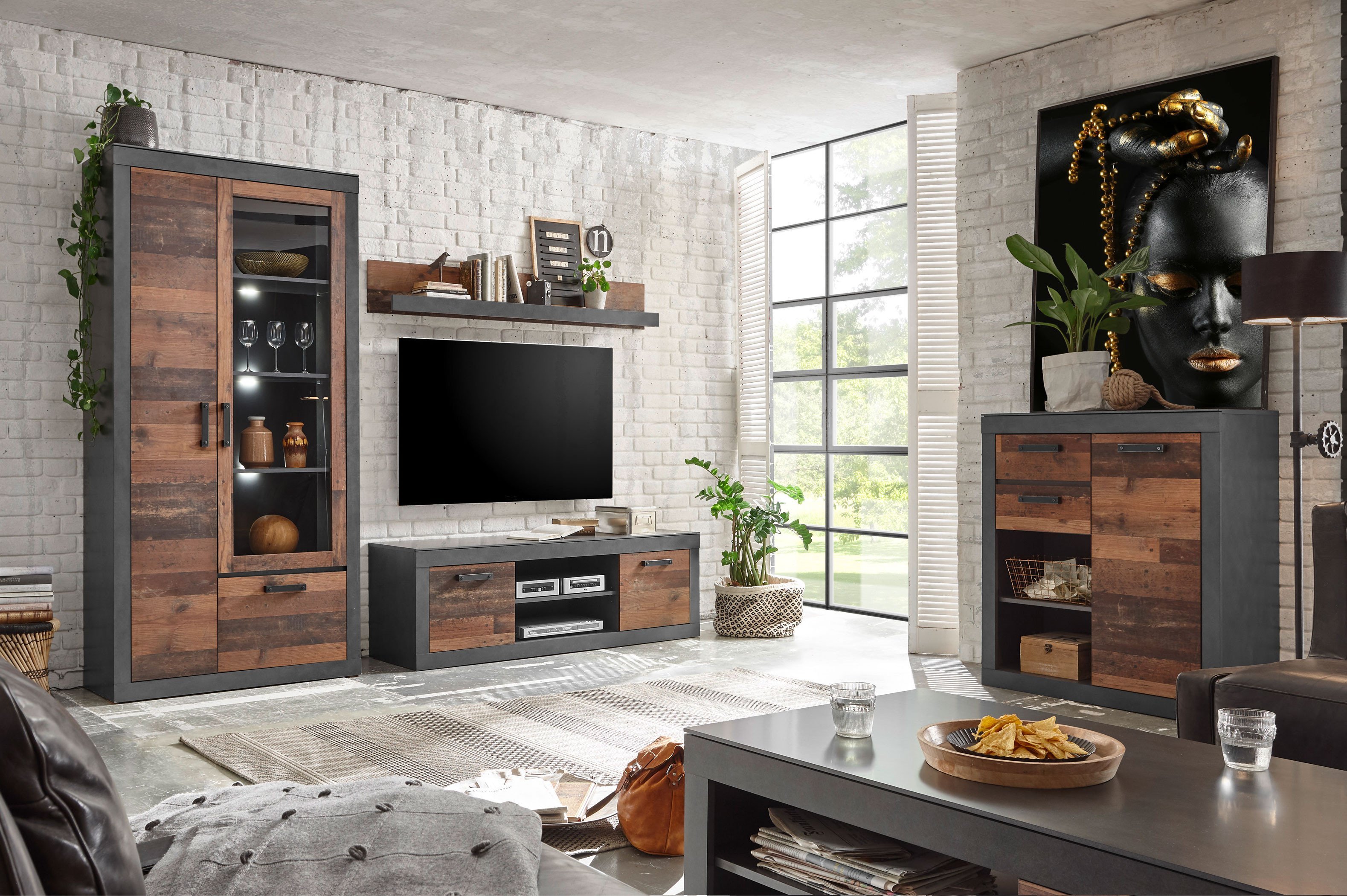 Stilvoll & modern - dieses Motto hat der Hersteller Kollektion Letz in seiner neuen Modellreihe Brooklyn bestens umgesetzt. Durch die extravagante Old Mix - Ausführung wird der Vintage-Look besonders hervorgehoben. Aber nicht nur das Design ist ausschlaggebend für eine perfekte Wohnzimmereinrichtung. Darüber hinaus verfügt diese Wohnwand von Kollektion Letz über ausreichend Stauraum. Hinter den Türen erhalten Sie zum einen die Möglichkeit, Ihre persönlichen Unterlagen oder Ihre alltäglichen Utensilien außer Sichtweite unterzubringen. Zum anderen können Sie Ihren neuesten Fernseher sowie Ihren Receiver in den offenen Fächern und auf den Ablageflächen stilsicher präsentieren. Eine LED-Beleuchtung für die Vitrine versetzt zudem Ihre Schmuckstücke in ein dezentes Licht und versprüht in Ihrem gemütlichen Zuhause ein angenehmes Ambiente. Schließen Sie Ihre Augen und erschaffen Sie sich mit dem Mobiliar von Kollektion Letz aus der Modellreihe Brooklyn Ihren persönlichen Wohn(t)raum.