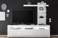Minimalistisch und stilvoll - so präsentiert sich Ihnen die abgebildete Wohnwand-Konstellation von Kollektion Letz. Das Ensemble entstammt der Modellreihe Carat und zeigt sich in Weiß Hochglanz mit abgesetzten Applikationen in Beton Atelier oder Weiß. Das Lowboard überzeugt mit drei Schubkästen, welche für ansehnlichen Stauraum sorgen. Die drei Nischen fügen sich optimal in das Möbel ein und bieten Ihnen die Möglichkeit, zum Beispiel Ihren Blu-ray-Player sowie Ihre Spielekonsole perfekt anzuordnen. Eine optionale LED-Beleuchtung taucht die Nischen in ein helles Licht und verleiht dem guten Stück das gewisse Etwas. Platzieren Sie auf der großzügigen Ablagefläche Ihren Fernseher und setzen Sie auf dem Aufsatzregal Ihre liebsten Familienbilder oder aber bezaubernde Dekorationselemente gekonnt in Szene. Beschreiten Sie anhand unseres Konfigurators einen weiteren Gestaltungsweg und suchen Sie sich zusätzliche Einzelmöbel zu der aufgeführten Wohnwand aus, oder aber stöbern Sie in den bereits vorgeschlagenen, ansehnlichen Wohnwand-Varianten, wählen Sie Ihren Favoriten aus und richten Sie sich Ihren Wohlfühlraum nach Ihren Wünschen ein - mit neuen, modernen Möbeln von Kollektion Letz.