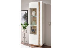 Mit einer Breite von circa 60 cm und einer Höhe von circa 194 cm präsentiert sich die wundervolle Vitrine von Kollektion Letz aus der Modellreihe Clair. Die elegante Ausführung in strahlendem Weiß mit Absetzungen in Grandson Oak bewirkt in Ihrem Zuhause ein angenehmes Ambiente und gibt Ihnen das Gefühl, wie auf Wolke sieben zu schweben. Egal, ob Sie dieses Möbelstück als Solisten oder in Kombination mit weiteren Einrichtungsmöbeln in Ihrem Heim nutzen möchten - diese Vitrine wird in all Ihren verschiedenen Wohnbereichen zu einem wahrlichen Hingucker. Eine LED-Glasbodenbeleuchtung, welche optional erhältlich ist, rundet diese gemütliche Atmosphäre wunderbar ab. Weiteres Mobiliar aus der Modellreihe Clair von Kollektion Letz erhalten Sie über unseren Möbelplaner. So können Sie sich jederzeit Ihre Inneneinrichtung selbst planen und ganz individuell zusammenstellen. Erschaffen Sie sich Ihre wohltuende Wohnoase und machen Sie es sich gemütlich.