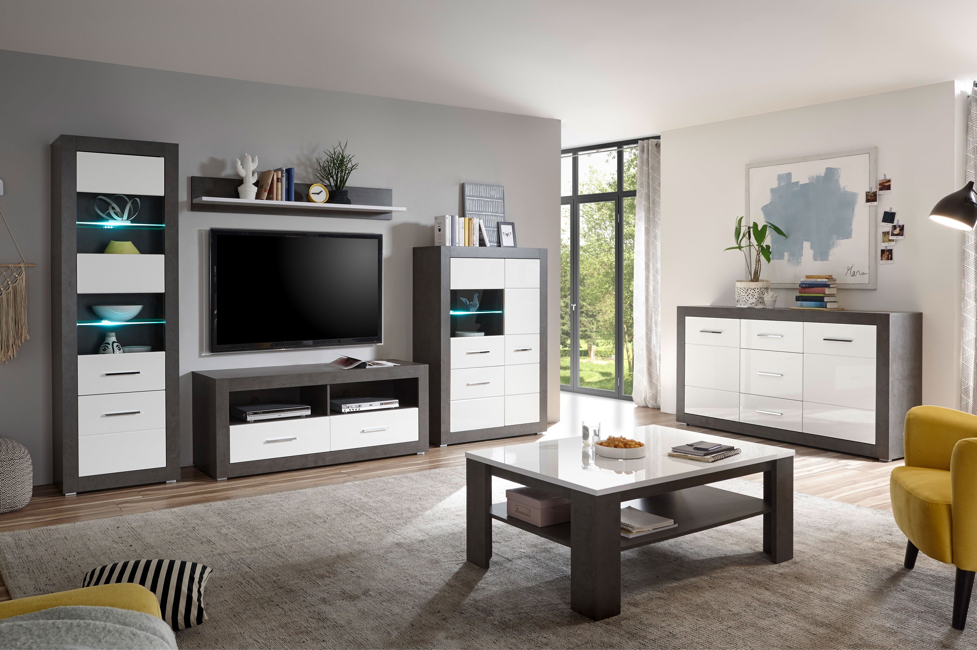Sie sind auf der Suche nach Einrichtungsmöbeln in einer modernen Stilrichtung und einer klaren Formensprache? Dann ist die Wohnwand von Kollektion Letz aus der Modellreihe Etero genau das Richtige für Ihr gemütliches Wohnzimmer. Die Ausführung in weißem Hochglanz mit kontrastreichen Absetzungen in Dark Concret ist die ideale Kombination, um zeitgemäßes Design mit klarem Stil miteinander zu verbinden. Die vierteilige Wohnwand besteht aus einer hohen Vitrine, einem Lowboard, einem Wandboard und einem niedrigen Highboard. Diese Möbelstücke überzeugen aber nicht nur als Set, sondern werden auch als Solisten in Ihrem Wohnbereich zu einem wahren Augenschmaus. Egal, wie Sie sich einrichten - gestalten Sie sich Ihren Lieblingsraum ganz nach Ihren Vorstellungen und lassen Sie diesen Raum als einzigartig erscheinen. Moderner Stil trifft auf klare Formensprache - das Mobiliar aus der Modellreihe Etero von Kollektion Letz.