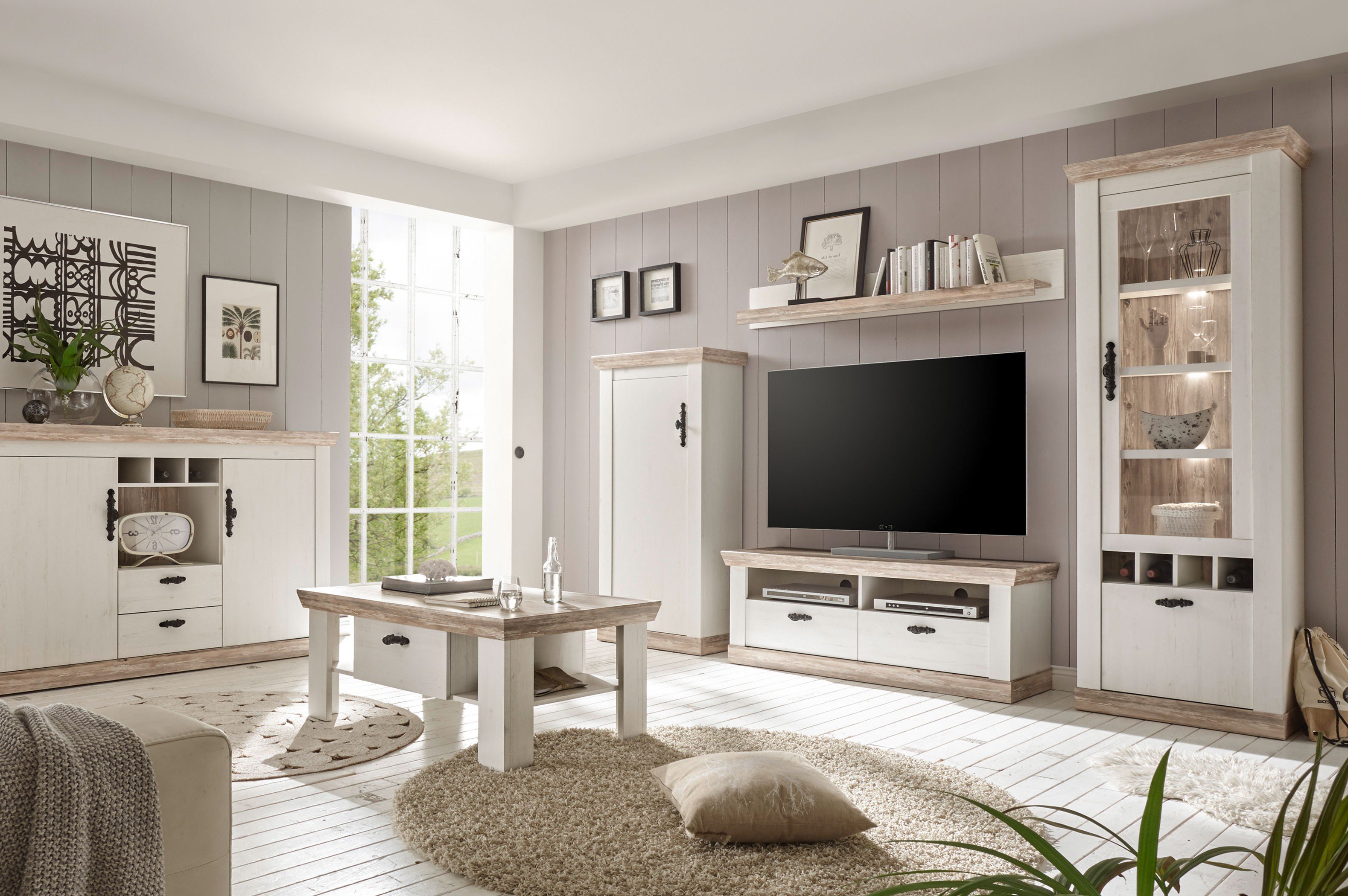 Sie sind noch auf der Suche nach einer Wohnwand im klassischen Landhausstil, die jedoch nicht langweilig wirken soll? Dann haben wir den passenden Tipp für Sie. Die Wohnwand 9P PL F2 bietet Ihnen durch die Kombination der schlichten weißen Pinie mit der Absetzung in Oslo Pinie einen ausdrucksstarken Begleiter für Ihren Wohnbereich und strahlt durch die Farbwahl zusätzlich einen gewissen maritimen Charme aus. Das Gesamtbild wird durch die verspielten Metallgriffe und die optional buchbare Beleuchtung abgerundet. Die Wohnkombination ist nicht nur ein Augenschmaus, sondern auch ein wahres Stauraumwunder. Die Hochkommode ermöglicht Ihnen, Ihre Filmesammlung sicher zu verstauen und diese gleichzeitig stets griffbereit zu haben. Auf dem eleganten Lowboard mit je zwei Schubkästen und Gerätefächern findet nicht nur Ihr Flatscreen seinen Platz - auch Spielekonsole, DVD-Player oder die Knabbereien für einen gemütlichen Filmeabend können sicher untergebracht werden. Das Lieblingsbuch oder die rankende Blume der Schwiegermutter finden Ihren Wirkungsraum auf dem Ablageboden des Wandboards. Die hohe Vitrine, welche über drei Böden hinter der Glasrahmentür verfügt, gibt Ihnen und Ihren Sammlerstücken ausreichend Entfaltungsmöglichkeiten in Sachen Präsentationsvariationen. Wir haben Ihr Interesse geweckt? Dann zögern Sie nicht länger und holen Sie sich noch heute die Kollektion Letz Wohnwand der Serie Florenz in Ihre Wohlfühloase und entdecken Sie das einzigartige Design.