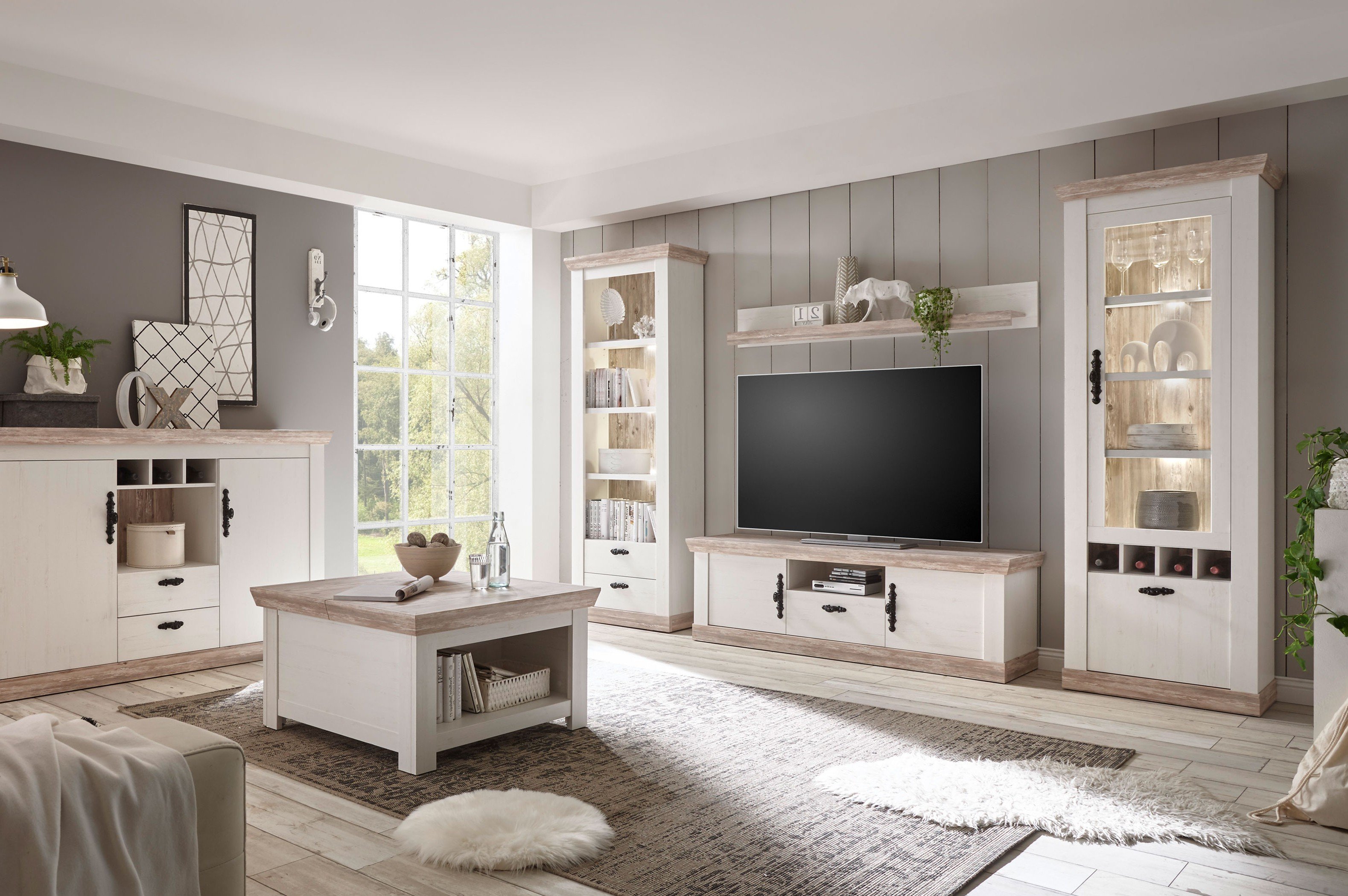 Wohnwand von Kollektion Letz - Modell Florenz 9PPLF8 in Pinie weiß/ braun Kollektion Letz - Landhausstil trifft maritime Ausstrahlung