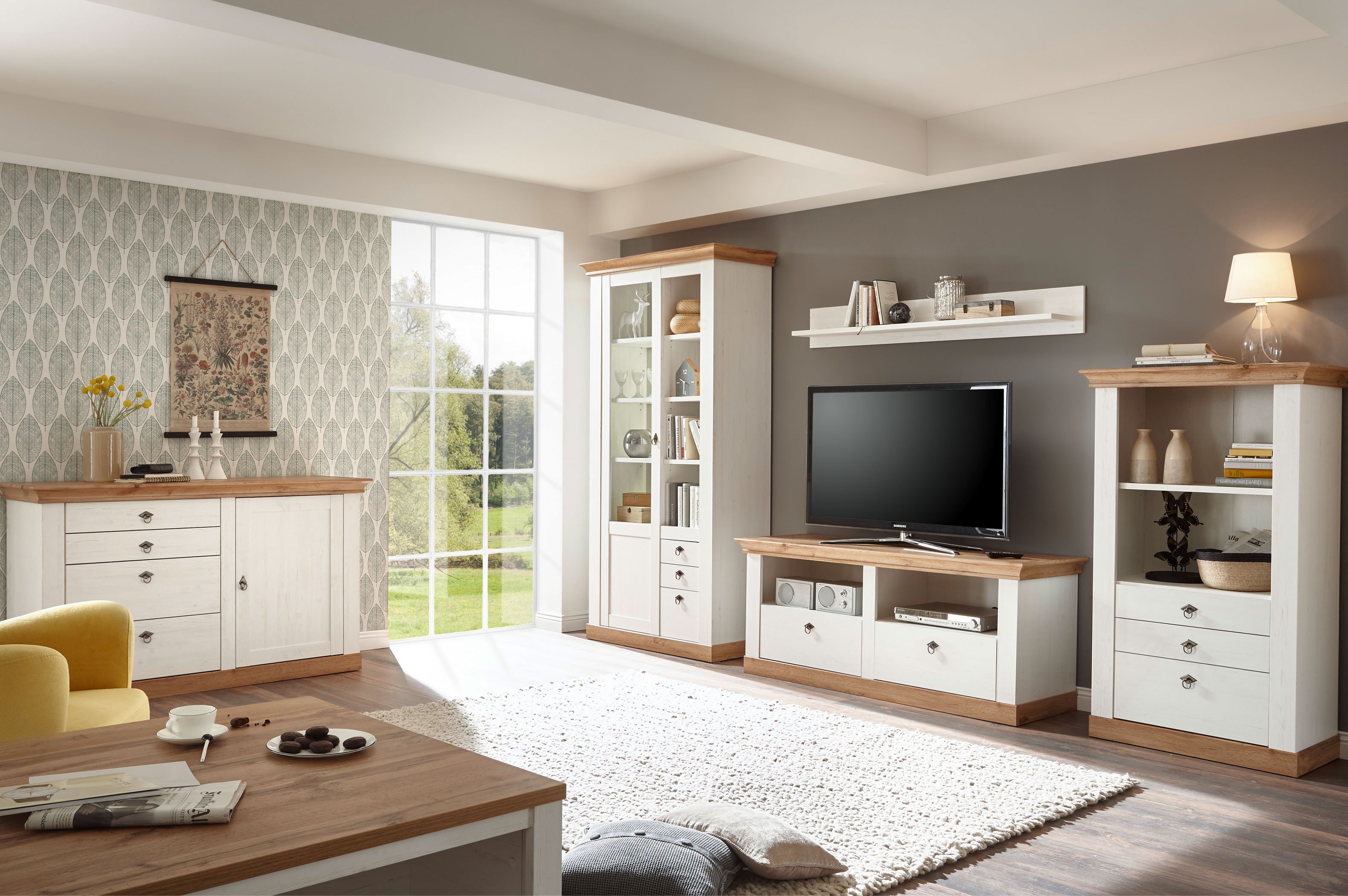Wohnwand 4tlg. von Kollektion Letz - Modell Landhaus in Pinie weiß Landhaus - klassisch im Landhausstil