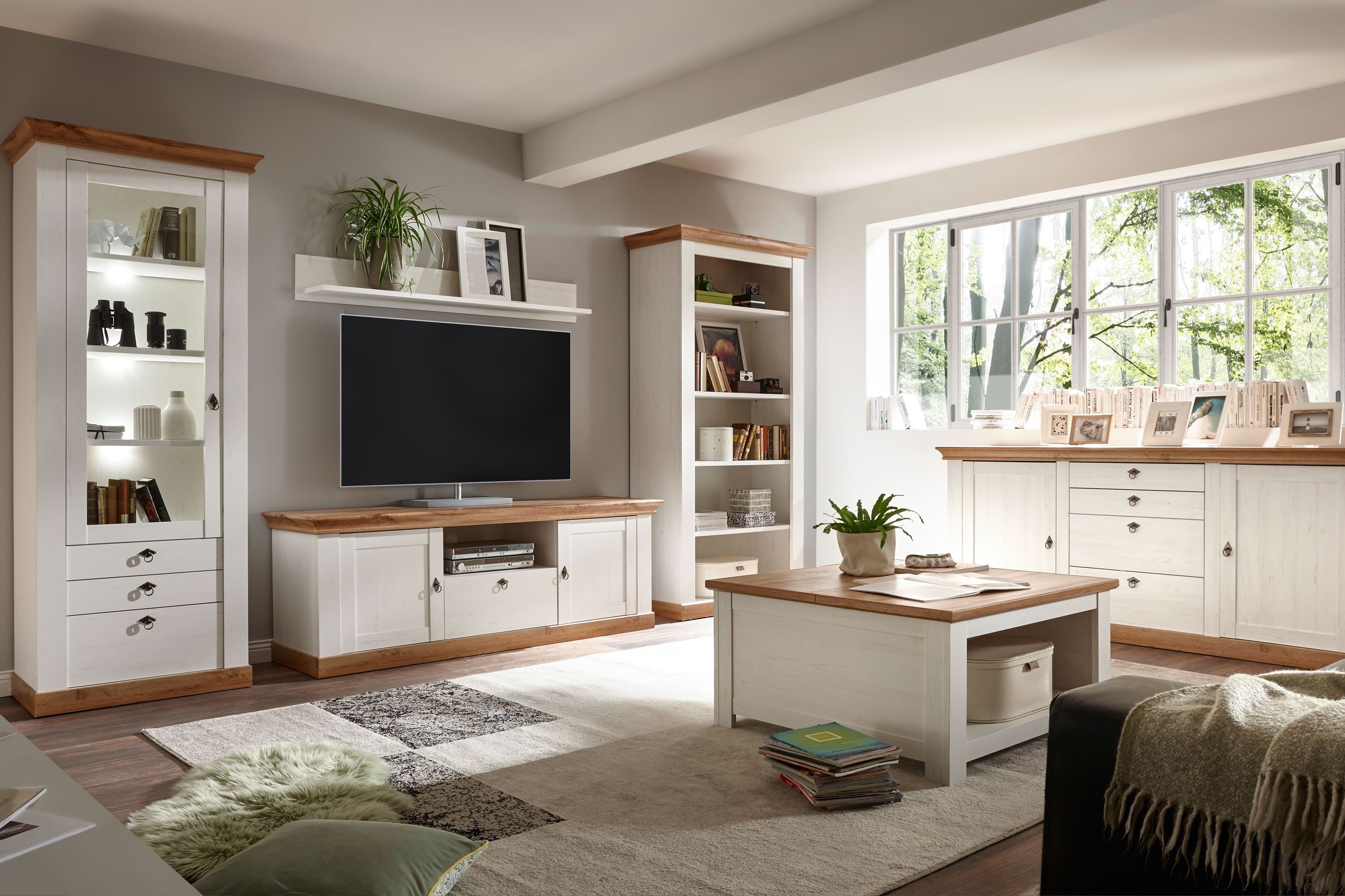 Wohnwand von Kollektion Letz - Modell Landhaus 8P PC H7 in Pinie weiß Landhaus - klassisch im Landhausstil