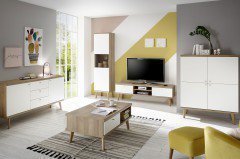 Wohnwand von Kollektion Letz - Modell Lena 8V WM M3 weiß/ Eiche Riviera Lena - ein Hauch von Skandinavien