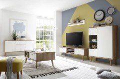 Wohnwand von Kollektion Letz - Modell Lena 8V WM M5 weiß/ Eiche Riviera Lena - ein Hauch von Skandinavien