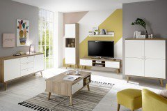 Wohnwand von Kollektion Letz - Modell Lena 8V WM M7 weiß/ Eiche Riviera Lena - ein Hauch von Skandinavien
