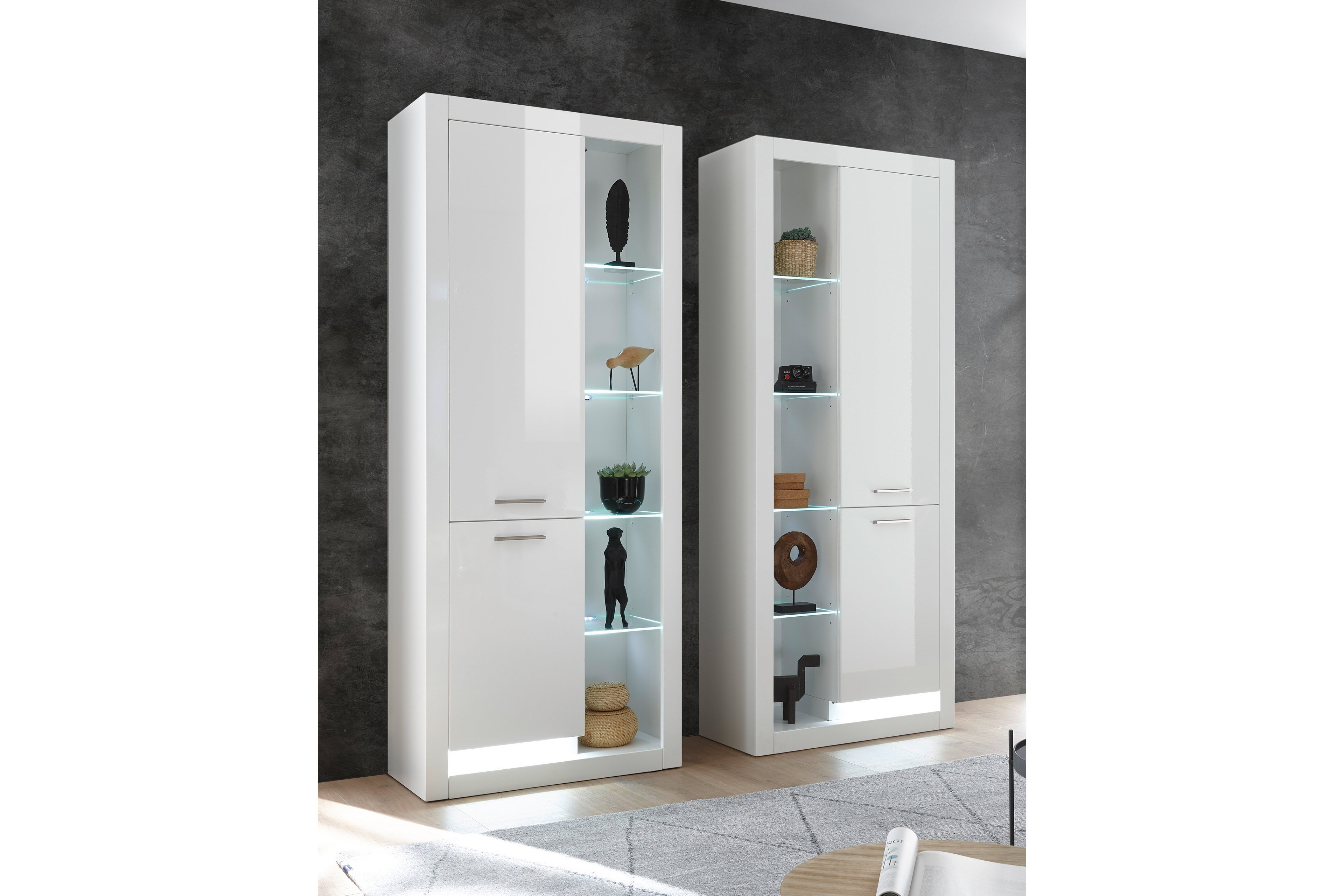 Ein Star in Ihrem Zuhause – mit diesem Motto präsentiert sich Ihnen die Modellreihe Meran aus dem Hause Kollektion Letz. Ein sehr wichtiges Möbel aus dieser Kollektion ist das stilvolle Stauraumelement. Mit einer weißen Hochglanz-Ausführung verleiht dieser Solist in Ihrem Wohnbereich nicht nur einen eleganten Charme, sondern wird überall in Ihren Räumlichkeiten zu einem wahren Highlight. Darüber hinaus ist das Stauraumelement von Kollektion Letz auch ein praktisches und flexibel einsetzbares Möbelstück. Zum einen erhalten Sie die Möglichkeit, hinter den beiden Holztüren alltägliche Utensilien oder persönliche Sachen außer Sichtweite unterzubringen und zum anderen in den offenen Fächern dekorative Accessoires sowie wundervolle Familienbilder stilsicher zur Schau zu stellen. Ein wahres i-Tüpfelchen sind die LED-Beleuchtungen, welche über unsere Zusatzoptionen erhältlich sind. Diese runden das wundervolle Erscheinungsbild stilsicher ab und tauchen Ihre Schätze in ein dezentes Licht. Erschaffen Sie sich mit dem Mobiliar von Kollektion Letz aus der Modellreihe Meran Ihren Wohn(t)raum und genießen Sie das einzigartige Ambiente.