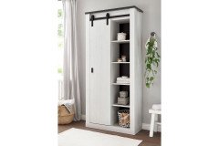 - Stauraumschrank mit 1 Schiebetür, 8 Böden und 5 offenen Fächern